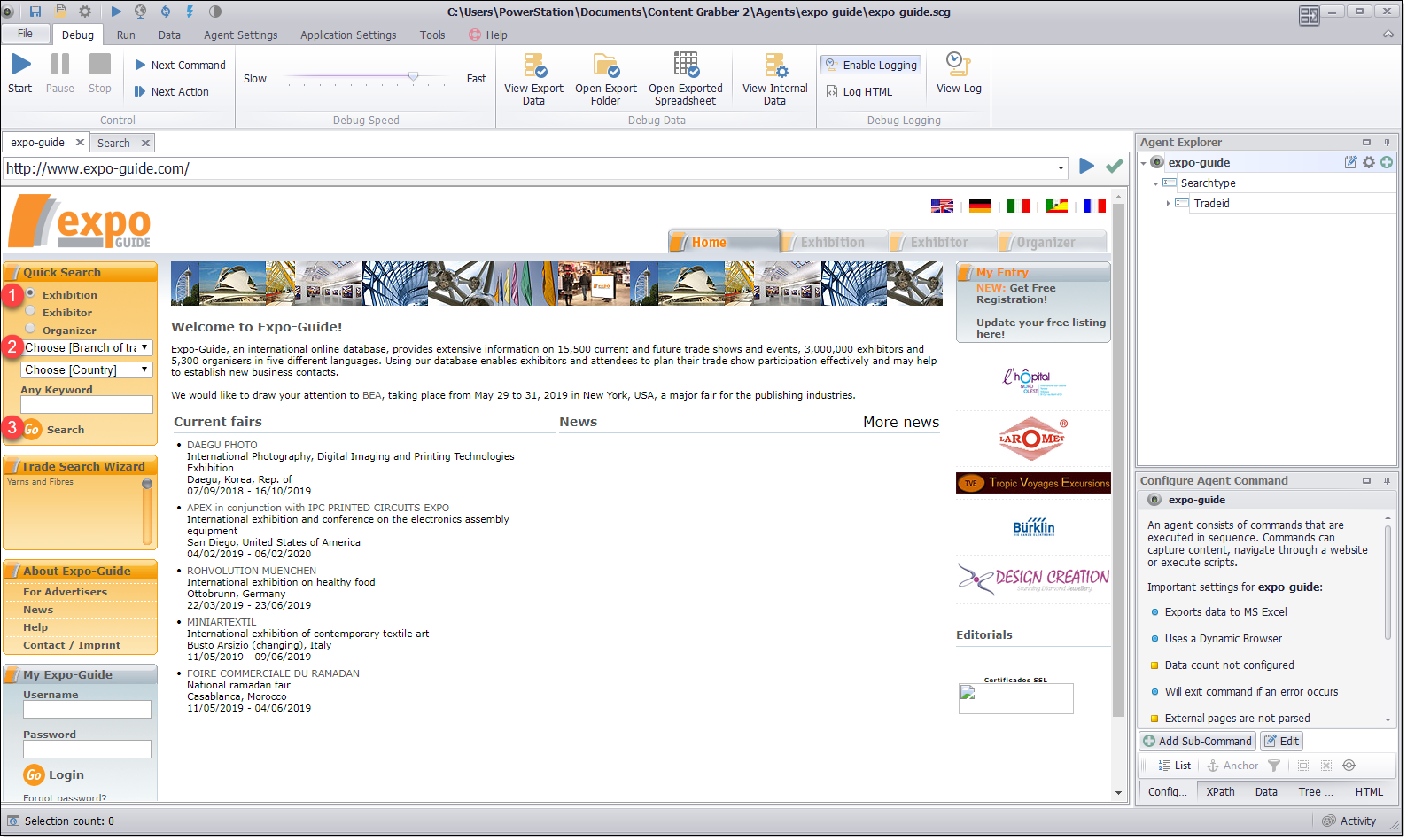 In this example, I’ll extract data from the website http://www.expo-guide.com/ which could be the largest repository of exhibitions listing in the field containing millions of exhibitors profiles records which are ever-growing over time. The task can be divided into 2 steps:
